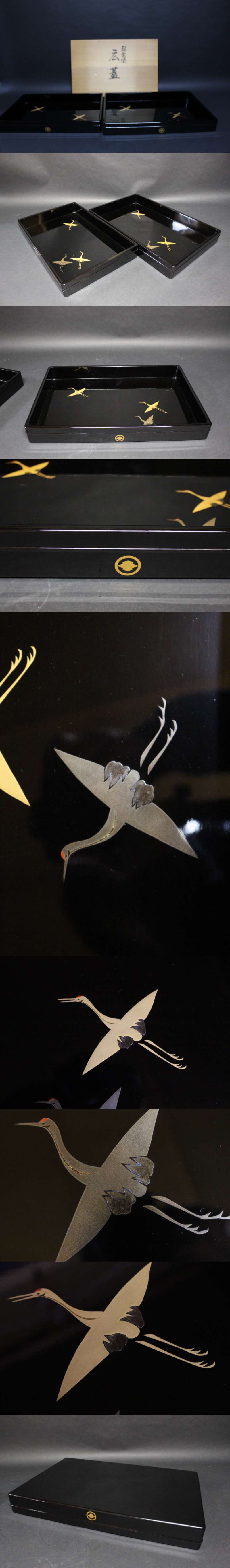 [新古品]輪島塗鶴蒔絵広蓋一組 22,000円