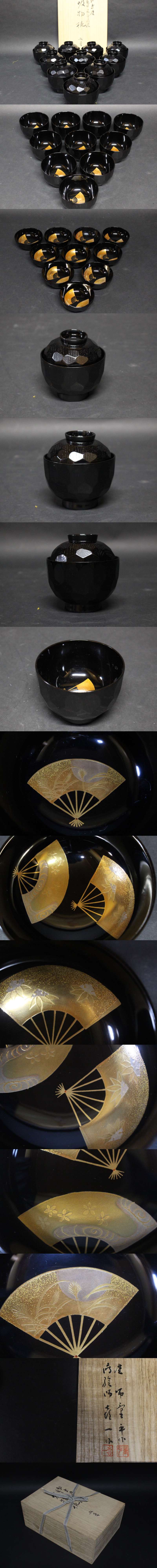 [新古品]輪島塗亀甲扇面蒔絵吸物椀10客 140,000円